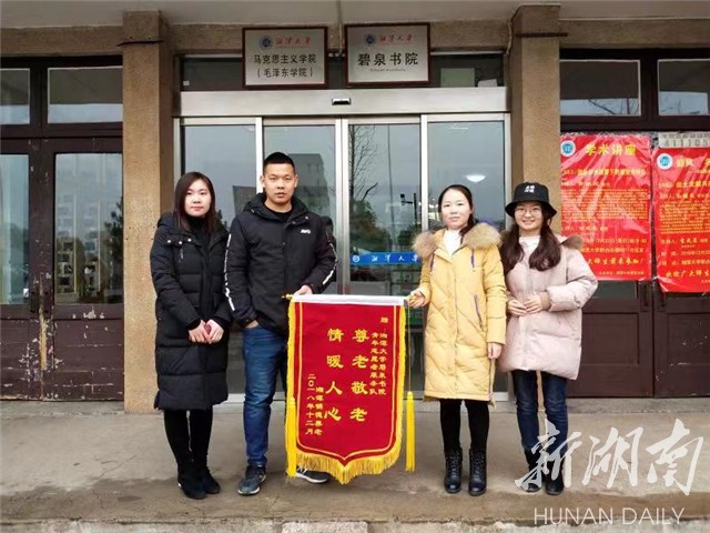 ,向该院青年志愿者服务队赠送“亲老敬老,温暖人心”锦旗,以感谢志愿者为养老院老人们所做的公益服务。