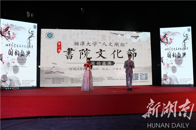 湖南日报·新湖南客户端4月30日讯(通讯员 农倩 向彦达)欢享国韵盛宴,细品人文湖湘。4月28日晚,细雨绵绵,湘大一田文化广场人头攒动、乐声婉转,该校首届“人文湖湘”书院文化节之“正声雅音——国韵盛典”活动在此火热进行。湘大副校长刘建平出席并为活动题字。
