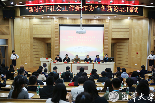 “新时代下社会工作新作为”分论坛在图书馆报告厅举行。湖南省教育厅高等教育处处长曾力勤、副校长刘建平出席。