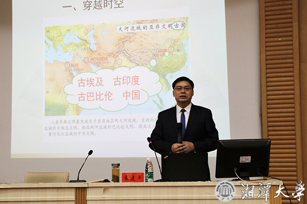 图书馆报告厅举行,湖南省博物馆陈列部主任袁建平研究馆员作了题为《“复活的木乃伊"——古埃及文物特展诠释》的讲座。讲座由副校长刘建平主持。