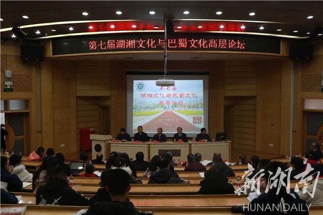 承办的“第七届湖湘文化与巴蜀文化高层论坛”在图书馆报告厅举办。西南民族大学校长曾明、湘大副校长刘建平出席论坛开幕式。