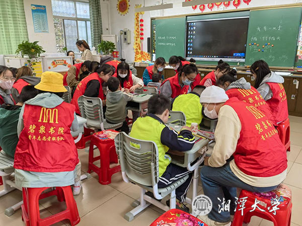 志愿者们走进湘潭市特殊教育学校,开展“梦想发射机计划”关爱特殊儿童志愿服务活动,与小朋友们手拉手,肩并肩,传递温暖与快乐。
