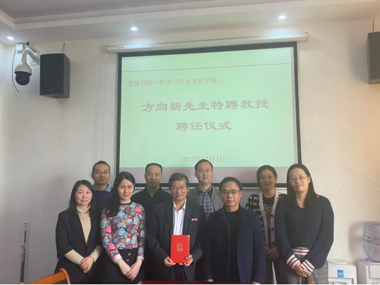 在办公楼四楼会议室举行了方向新特聘教授的聘任仪式。张今杰院长、郑鹏副院长以及陆自荣教授、毛小平教授、李琳教授、张恩迅副教授、秦加军老师、林艳老师、王林丽老师、曹意文老师等社会学系相关老师参加了聘任仪式。
