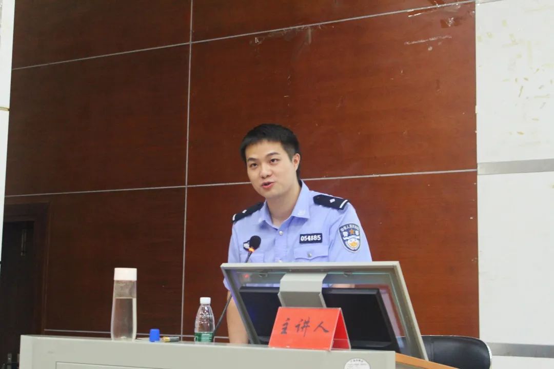 的学生代表,特邀雨湖区反诈中心宣讲员廖培勋警官深入校园,在逸夫楼第二报告厅就“提高防范意识,远离电信诈骗”开展反电诈宣讲活动。