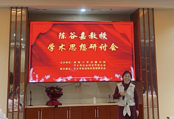 陈谷嘉教授是国内最早研究张栻的学者之一,数十年笔耕不辍,如今九十岁的高龄仍然奋战在学术前线。湖南大学岳麓书院朱汉民教授介绍了陈老先生一生的学术历程,随后以一曲《梅花赋》将气氛推向高潮。全体与会代表,在恭贺陈谷嘉教授九十寿诞之际,拉开了学术思想交流和讨论的序幕。