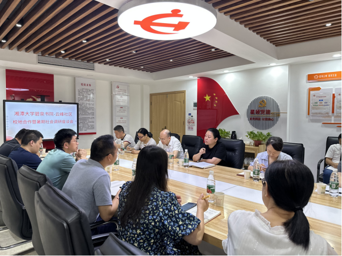 社会学系师生一行7人赴湘潭宝塔街道云峰社区,就校地合作事宜及暑期社会调研等工作展开了合作洽谈。
