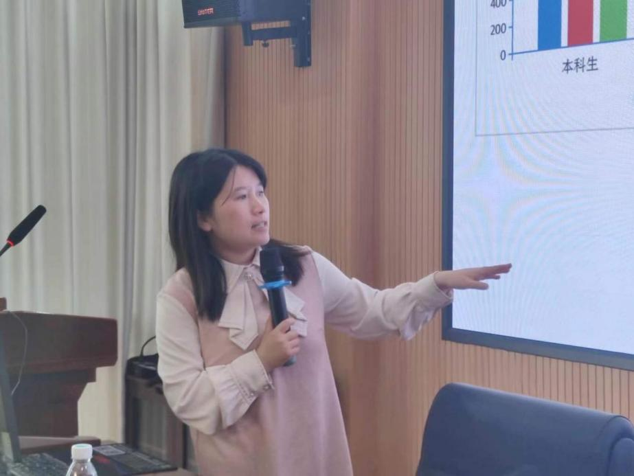 副院长蒋波发言。蒋波副院长指出班主任的工作非常重要,提出学生工作要不断提升工作水平、提高工作质量,要从高处着眼,低处着手,了解班级每一位同学的状况,不忘教育初心,做好学生成长的引路人和同路人。