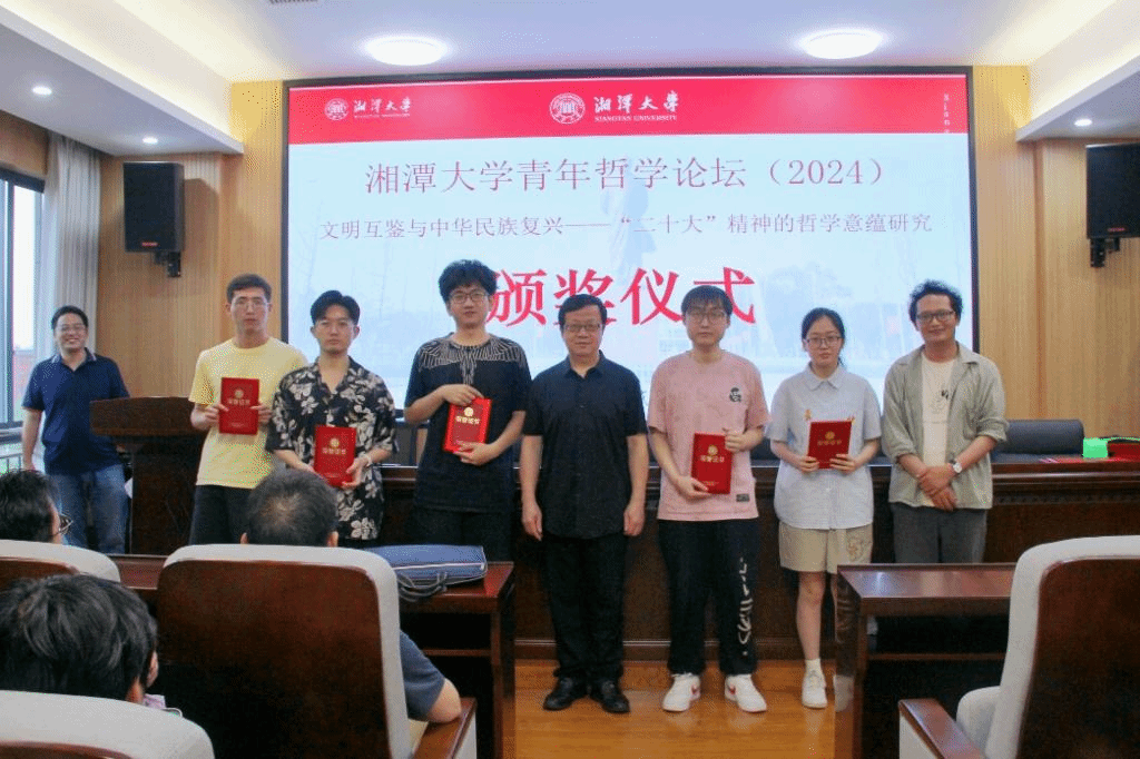 学术委员会主任陈代湘教授作大会总结致辞。陈代湘教授回顾了此次论坛的学术成果,特别赞赏了同学们的学术热情和卓越表现,并期待碧泉青年学术论坛的影响力能够继续扩大,成为湖湘学子进行学术交流的重要平台。在闭幕式的最后,老师为获奖同学颁发证书以及合影留念。