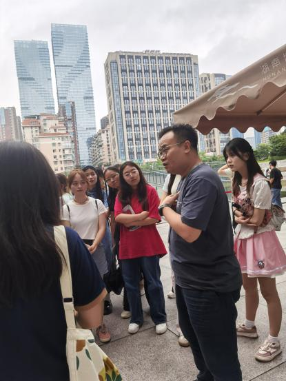 最后我们还有幸邀请到了文创研究中心主任张煦,他向同学们介绍有关文创产品制作及销售的模式,同学们围在老师身旁认真听讲,了解到了更多馆藏文物衍生开发的相关知识。