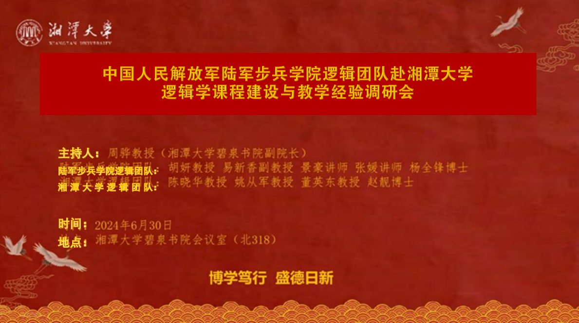 逻辑团队与中国人民解放军陆军步兵学院逻辑团队就逻辑学课程建设与本科教学工作等方面展开了座谈,旨在通过资源共享、科研合作、人才培养与推荐就业等方式,共同推动逻辑教育的高质量发展。此次座谈是双方在逻辑教育领域合作的开局,也将促进提高双方逻辑学建设水平。