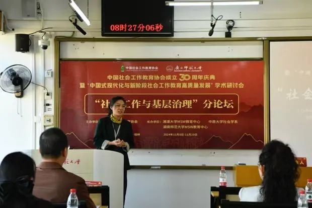 MSW教育中心携手中南大学社会学系、湖南师范大学MSW教育中心,共同承担了“社会工作与基层治理”分论坛的组织与筹办工作,展现了湖南地区在社会工作教育领域的研究成果与学术风采,为年会增添了浓厚的学术氛围和实践探讨色彩。