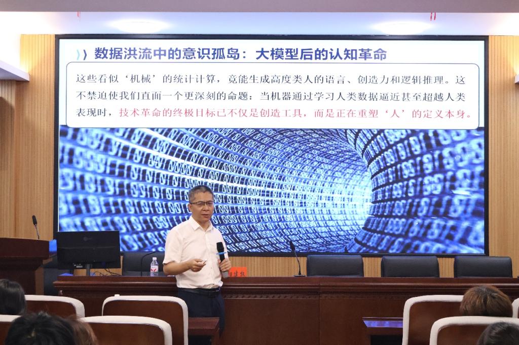 面对AI的迅猛发展,欧阳建权教授强调需警惕伦理挑战,如数据偏见、就业替代和算法失控风险。他引用“缸中之脑”“中文屋”等哲学思想实验,引发师生对“智能本质”的讨论,并呼吁在技术发展中融入人文关怀,构建“算力与伦理同频”的未来生态。