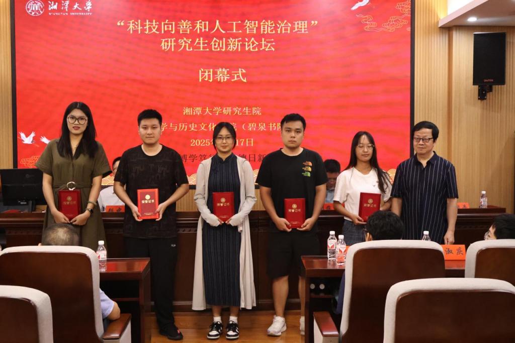 论坛闭幕式由周骅教授主持,陈代湘教授宣布优秀论文评审结果,并为获得一、二、三等奖的学子颁奖。陈代湘教授在总结致辞中指出:“本次论坛展现了青年学者在科技哲学领域的创新思考,为人工智能治理提供了多元化的理论视角。