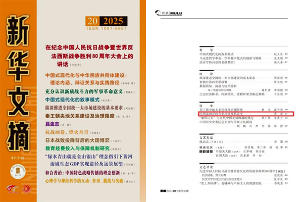 蒋波教授论文《论周秦两汉的官吏功赏及其流变》被国家权威刊物《新华文摘》2025年第20期全文转载。该文原载《河北学刊》2025年第4期,是蒋波教授主持的国家社科基金后期资助项目“汉代官吏管理制度新探”重要成果。