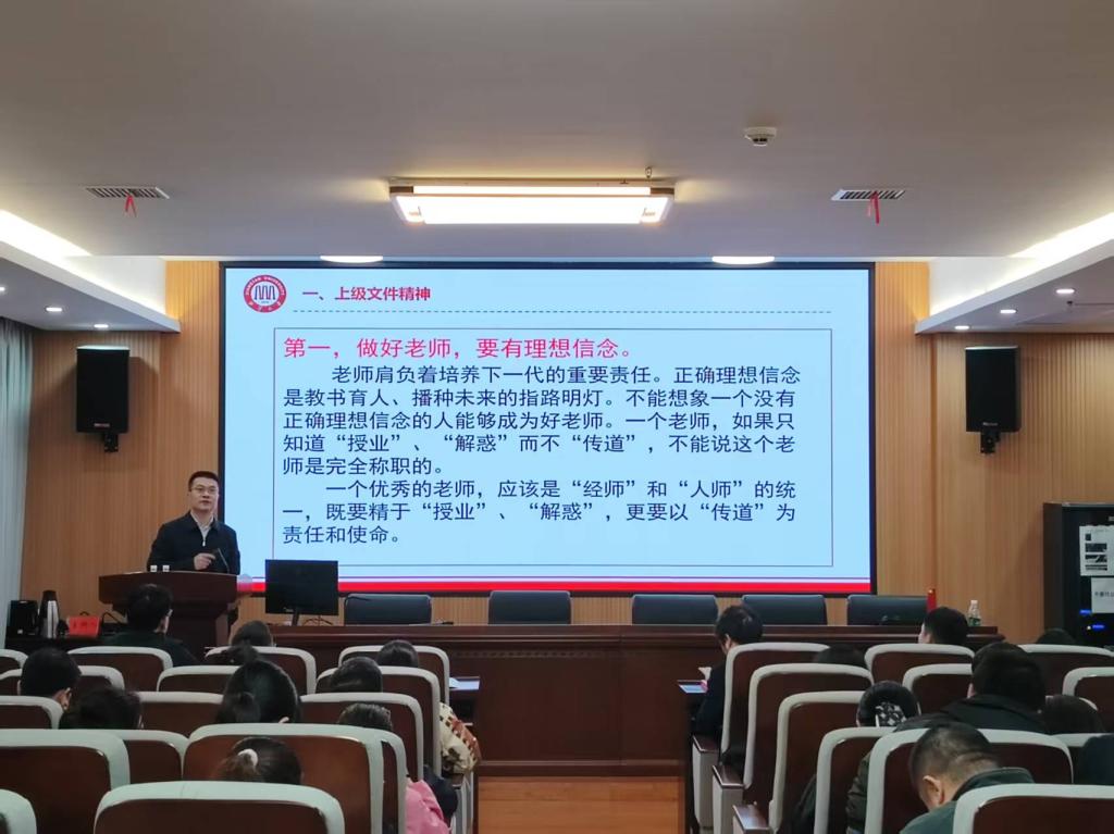 第127期“明道信道”讲座,围绕“聚焦立德树人加强师德师风建设——做“四有”好老师”主题开展师德师风建设专题讲座。本次讲座由学院党委书记资义平同志主讲,全院教职工参加学习。