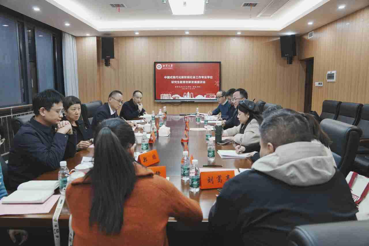 在北318会议室召开“中国式现代化新阶段社会工作专业学位研究生教育的创新发展”座谈会。会议特邀北京大学知名学者马凤芝教授莅临指导,副校长刘中望、学院院长张今杰、副院长郑鹏及二十余位骨干教师参会,依托漫画18