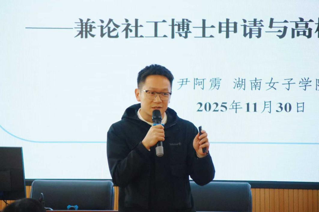 尹阿雳老师以《从求学到为师——兼论社工博士申请与高校教职应聘经验》为题,分享了自己从社会工作本科生、硕士生、从业者,再到社会工作博士和社会工作专任教师的进阶历程,用亲身体验拉近与同学们的距离。他以“为什么读博”“去哪里读博”两大核心问题引发全场思考,强调读博绝非本科、硕士学习的简单延续,而是一场深刻的科学探险之旅,需以学术追求、职业发展和个体内驱力为核心动力。随后,他分享了高校教职应聘的实战心得,指出高水平科研成果是核心竞争力,教学与实务经验为重要加分项。分享尾声,尹老师引用苏格拉底“认识你自己”的名言,寄语同学们勇敢探索自我、深刻认知自我,在职业选择与人生道路上坚定地追求属于自己的价值。