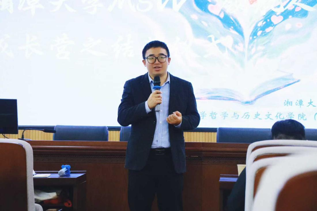 袁明老师以《社会工作学、行、思、辨:一场热爱与深耕的双向奔赴》为题,从“学、行、思、辨”四个维度,引导同学们实现知行合一。他认为“学”要掌握专业逻辑与跨学科知识,“行”要将理论功底转化为服务能力,“思”要通过反思日记积累经验,“辨”要透过现象把握专业本质与职业方向。他鼓励同学们秉持终身学习态度,在广泛涉猎多领域实践的同时,坚守“助人自助”初心,在职业选择中找到适合自己的发展道路,让每一份努力都转化为成长动能。