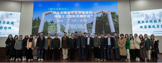 承办的韶风名家论坛在研究生院报告厅隆重举行,本次讲座邀请到了著名学者张异兵(笔名:张一兵)教授。张教授从“研究法国情境主义国际思潮的原因和目的”“情境主义国际发展的历史线索和相关人物与背景”以及“这些人物提出的一些关键性问题”三个方面介绍了法国著名的革命艺术先锋流派——情境主义国际。