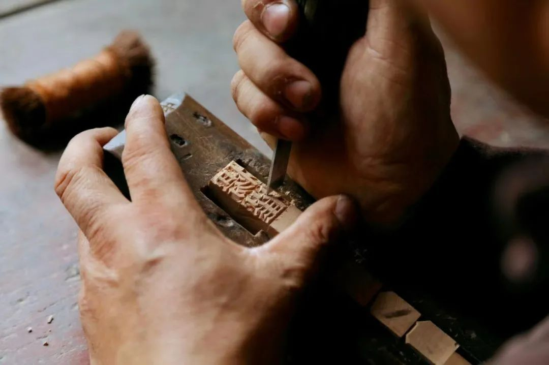 木活字印刷术分为八道工序:即选料备料、字坯制作、字模雕刻、捡字排版、印刷校对、拆版还字、分册折页、盖印编号。实践团的成员们有幸亲眼目睹了木活字印刷工艺,吴汉涌首先为同学们展示木活字字模雕刻工艺,只见他手持一把普通而又具有年岁的刻刀,左手扶着木坯,专心致志地雕刻,不一会儿,一枚精美的汉字跃然于木坯之上。精湛的手艺,赢得了同学们的喝彩。之后,吴汉涌还陆续展示了拣字制框、上墨、印刷等工序,让大家赞叹不已。