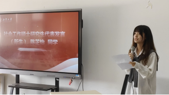 曹意文老师作为导师代表与新生们分享了三个词:实践,在实践中体验社工的精神和魅力;平等,社工不是高高在上的拯救者,而是一种无关财富、权力、年龄的给予;专业,意味着同学们要超脱个人的情绪和价值观,遵循社工的职业伦理和价值观?/span>